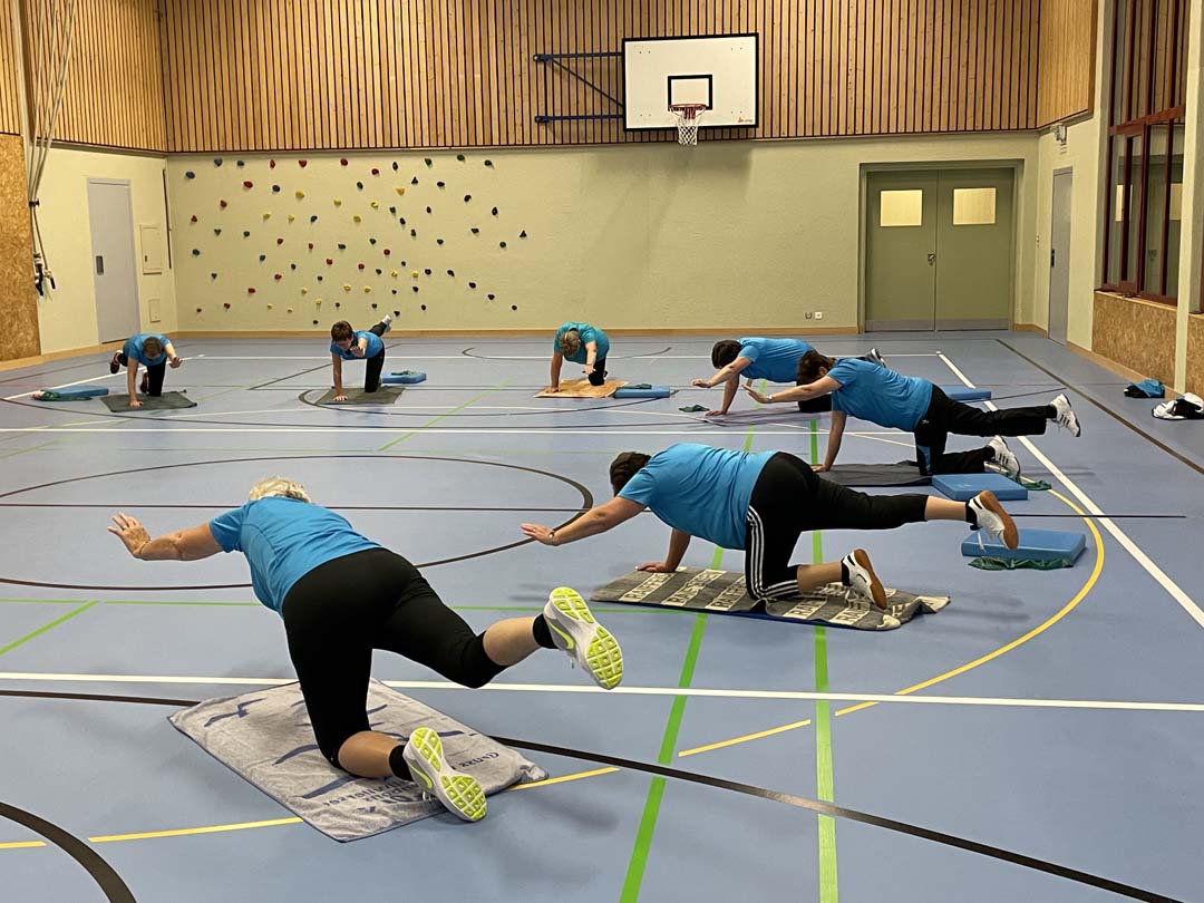 Die Mitglieder der Frau­en­riege treffen sich jeden Donners­tag­abend zur Turn­stunde. Die Frauen im Alter 60+ halten sich mit Gymna­stik, Übungen mit dem Thera-Band, diversen Statio­nen­trai­nings und mit Kraft- und Dehnungs­übungen fit. Im Sommer steht zur Abwechs­lung in der näheren Umge­bung zügiges Marschieren mit Stöcken auf dem Programm.