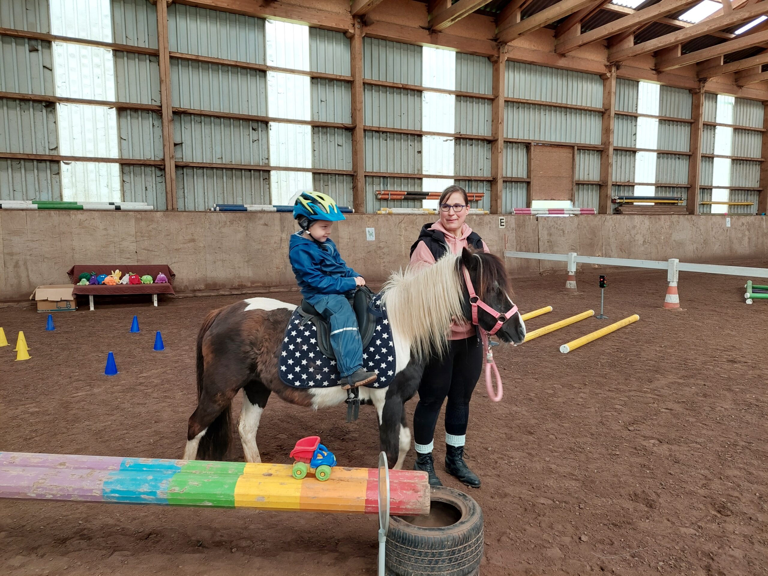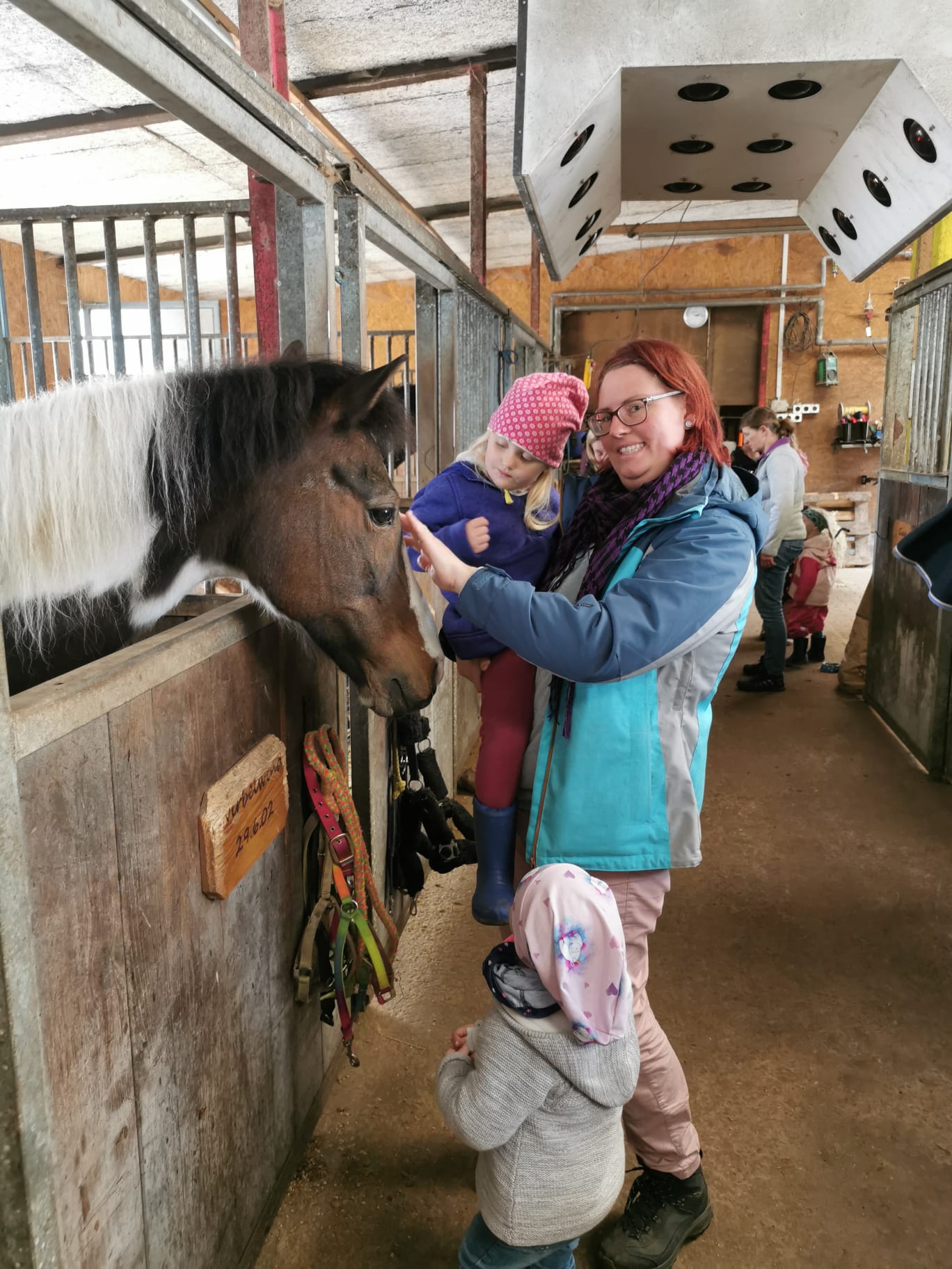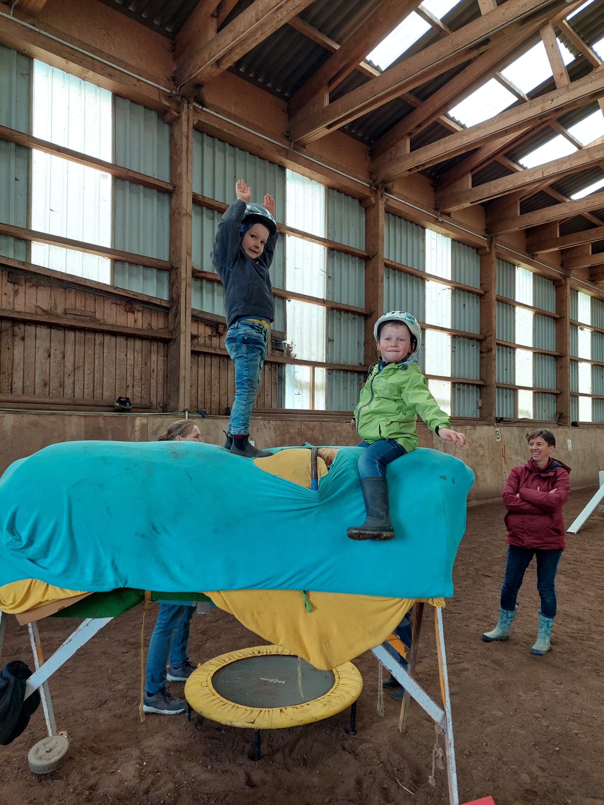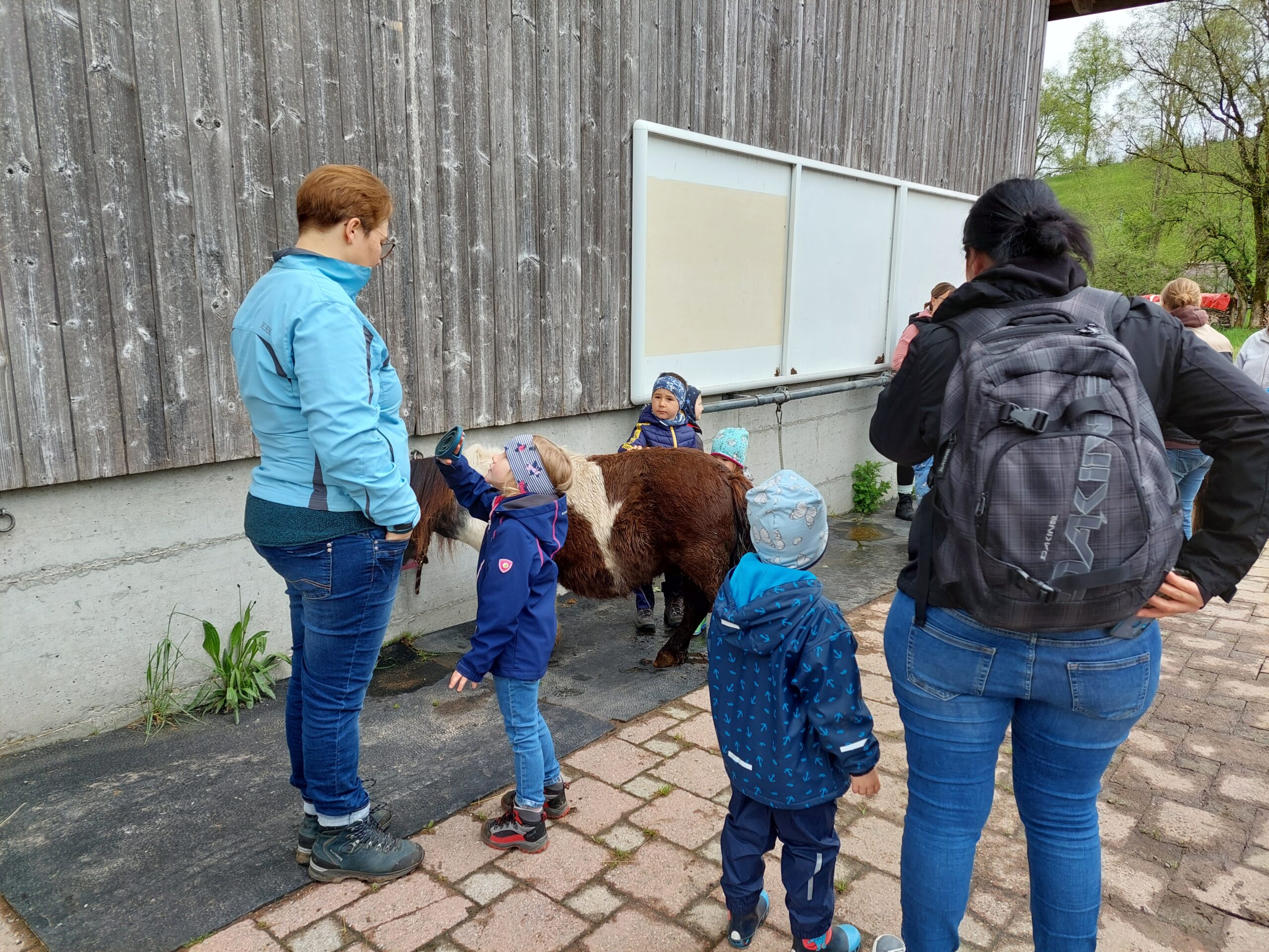 Fest verankert ist das Ponyreiten im Jahresprogramm vom MU-KI Turnen Hasle. Dieses Jahr besuchten wir in 2 Gruppen den Zucht-Reitstall der Familie Emmenegger, Chreie. Noch etwas scheu kam die erste Gruppe am Vormittag, aber als dann die Ponys aus dem Stall geholt wurden leuchteten die Kinderaugen und alle halfen tatkräftig beim Putzen und Satteln mit. In der grossen Reithalle war auch bereits ein Verkehrs Parcour aufgebaut. So konnten sich bereits die ersten Kinder mutig auf den Sattel von Donna und Gino schwingen. Der tolle Parcour mit Fussgängerstreifen, Kreisel und die Baustelle wurde von den Kindern toll gemeistert. Damit es niemandem langweilig wurde konnten sich die anderen Kinder in der Zwischenzeit das Balancieren auf dem Pferd, das Hufeisen werfen oder das Voltigieren ausprobieren. Beim Hofrundgang wurden die grossen Pferde bestaunt und Manuela beantwortete viele fragen von den Kindern. Beim anschliessendem Znüni oder Zvieri und Austoben verging die Turnstunde ausserhalb der Turnhalle sehr schnell. Die Kinder mit ihren Müttern verabschiedeten sich von den Ponys mit dreckigen aber glücklichen Gesichtern. Das kleine süsse Geschenk von Manuela wurde sehr geschätzt. Herzlichen Dank Manuela Denise und Erika für den tollen Tag. Er wird allen Kindern wohl noch lange in guter Erinnerung bleiben. Die Vorbereitungen für das neue MuKi-Jahr 2023/24 laufen bereits. Alle Kinder von Hasle, die am 31. Juli das dritte Lebensjahr erreicht haben, wurden angeschrieben. Das Muki-Turnen Hasle freut sich wieder auf viele neue Gesichter.