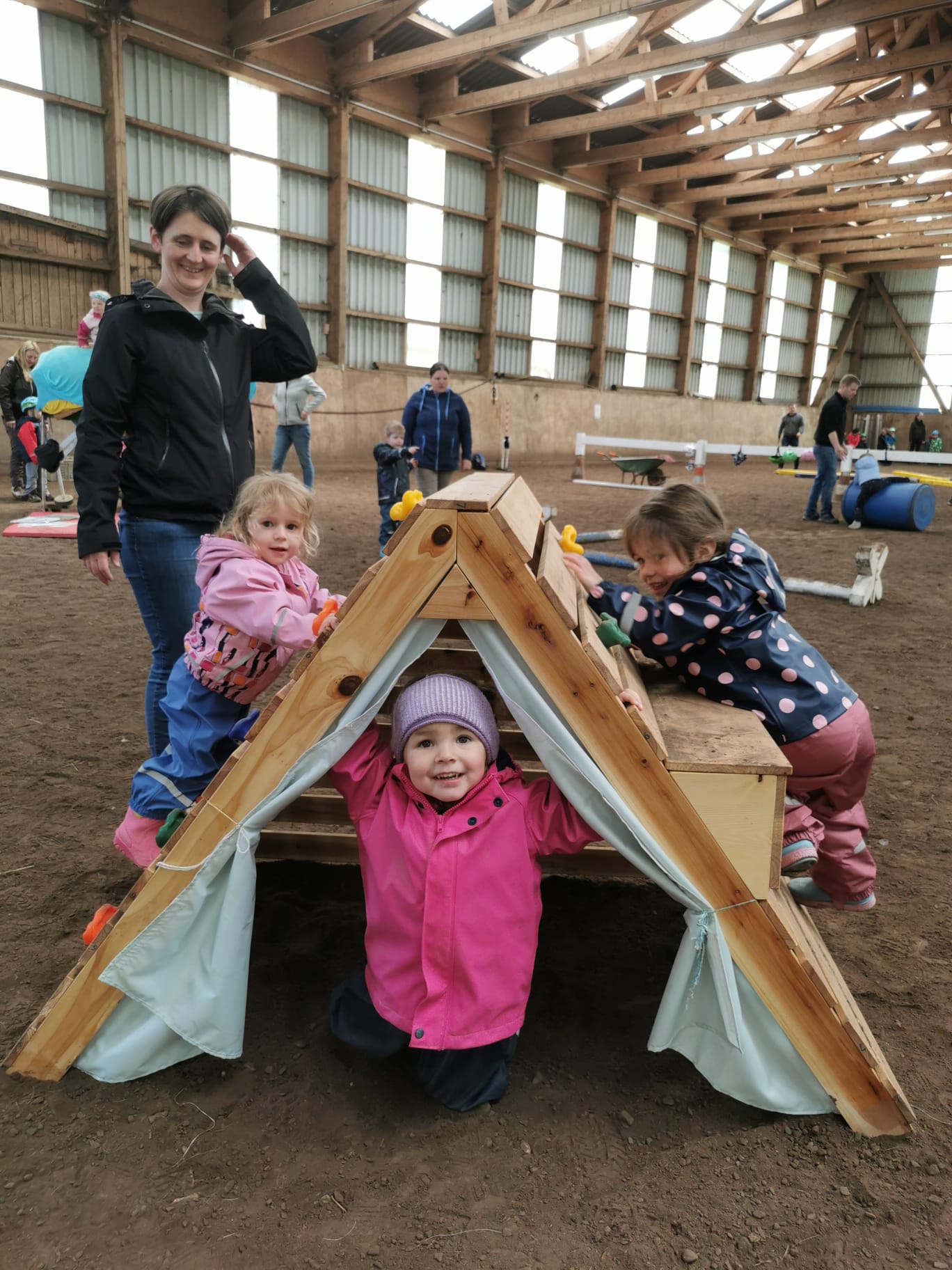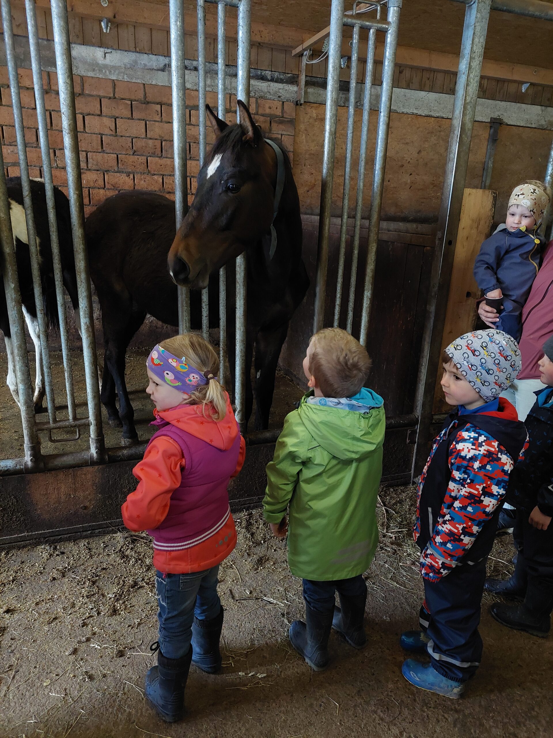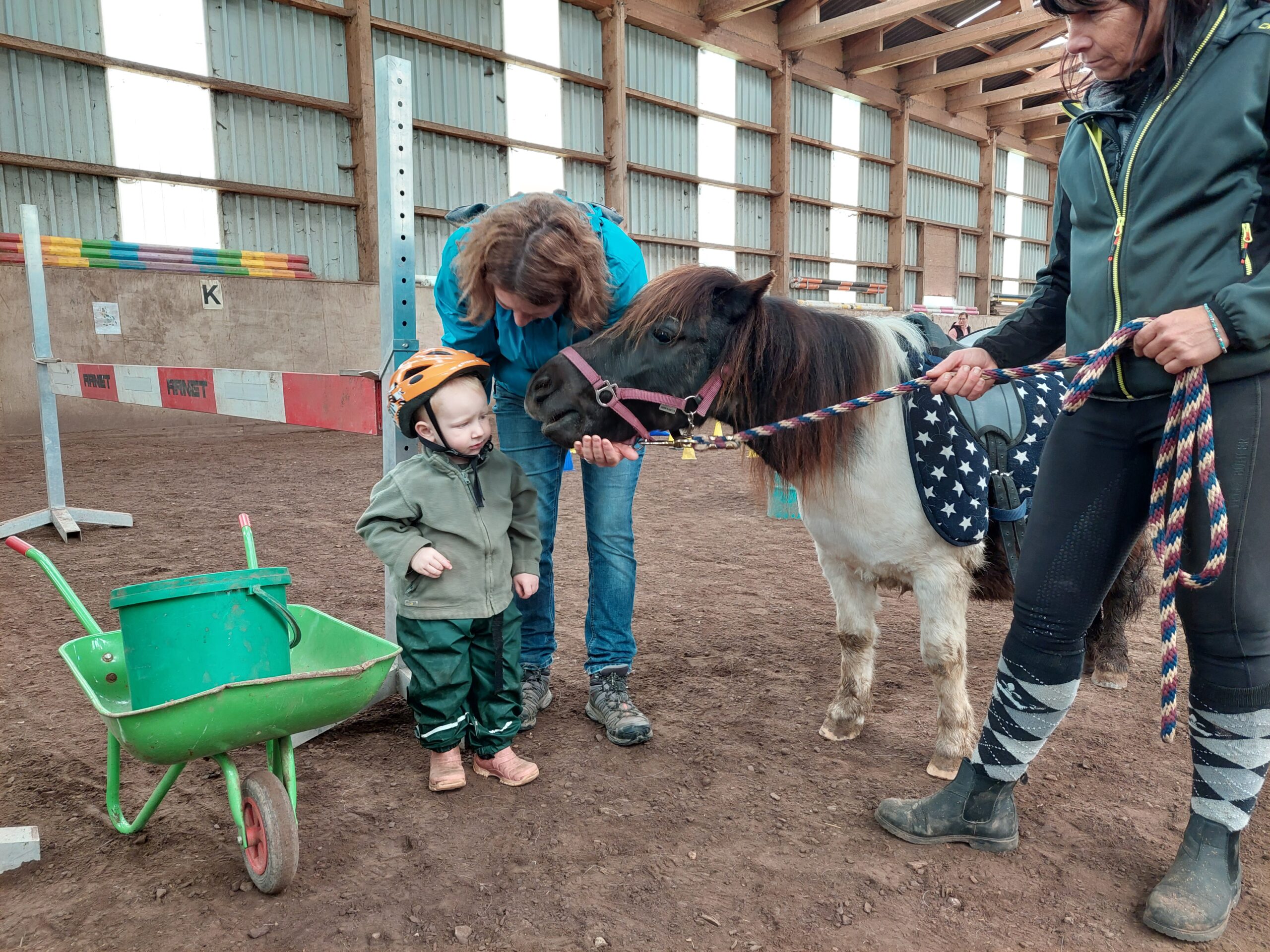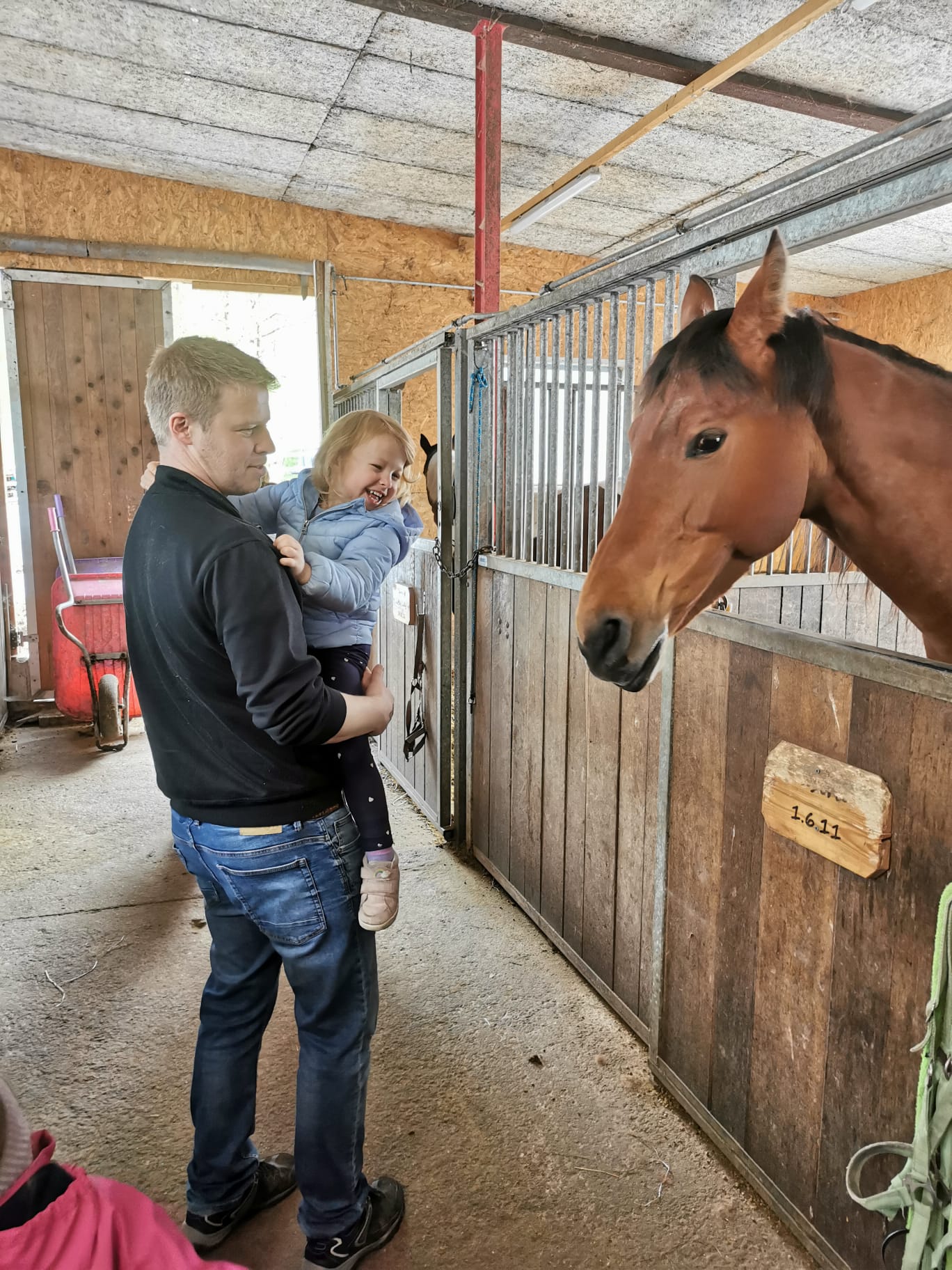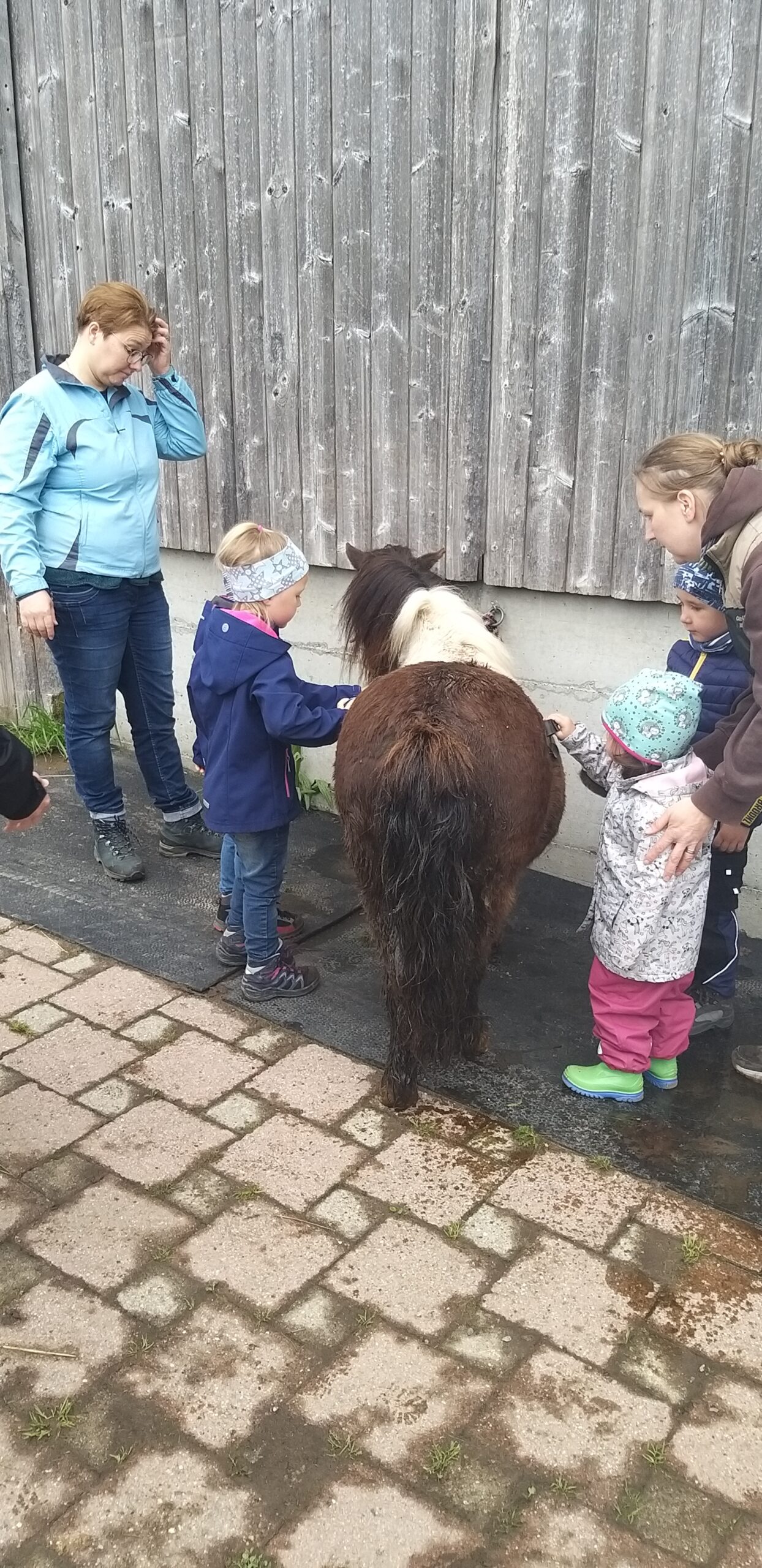 Fest verankert ist das Ponyreiten im Jahresprogramm vom MU-KI Turnen Hasle. Dieses Jahr besuchten wir in 2 Gruppen den Zucht-Reitstall der Familie Emmenegger, Chreie. Noch etwas scheu kam die erste Gruppe am Vormittag, aber als dann die Ponys aus dem Stall geholt wurden leuchteten die Kinderaugen und alle halfen tatkräftig beim Putzen und Satteln mit. In der grossen Reithalle war auch bereits ein Verkehrs Parcour aufgebaut. So konnten sich bereits die ersten Kinder mutig auf den Sattel von Donna und Gino schwingen. Der tolle Parcour mit Fussgängerstreifen, Kreisel und die Baustelle wurde von den Kindern toll gemeistert. Damit es niemandem langweilig wurde konnten sich die anderen Kinder in der Zwischenzeit das Balancieren auf dem Pferd, das Hufeisen werfen oder das Voltigieren ausprobieren. Beim Hofrundgang wurden die grossen Pferde bestaunt und Manuela beantwortete viele fragen von den Kindern. Beim anschliessendem Znüni oder Zvieri und Austoben verging die Turnstunde ausserhalb der Turnhalle sehr schnell. Die Kinder mit ihren Müttern verabschiedeten sich von den Ponys mit dreckigen aber glücklichen Gesichtern. Das kleine süsse Geschenk von Manuela wurde sehr geschätzt. Herzlichen Dank Manuela Denise und Erika für den tollen Tag. Er wird allen Kindern wohl noch lange in guter Erinnerung bleiben. Die Vorbereitungen für das neue MuKi-Jahr 2023/24 laufen bereits. Alle Kinder von Hasle, die am 31. Juli das dritte Lebensjahr erreicht haben, wurden angeschrieben. Das Muki-Turnen Hasle freut sich wieder auf viele neue Gesichter.