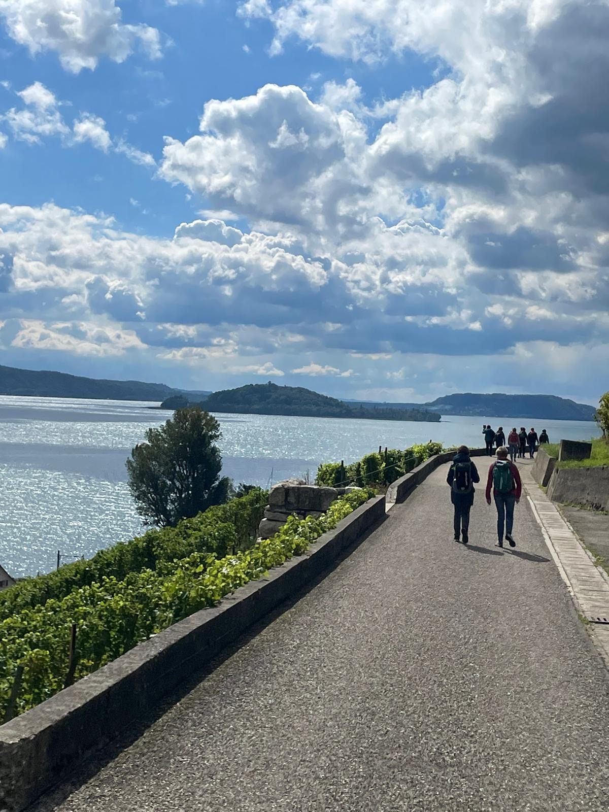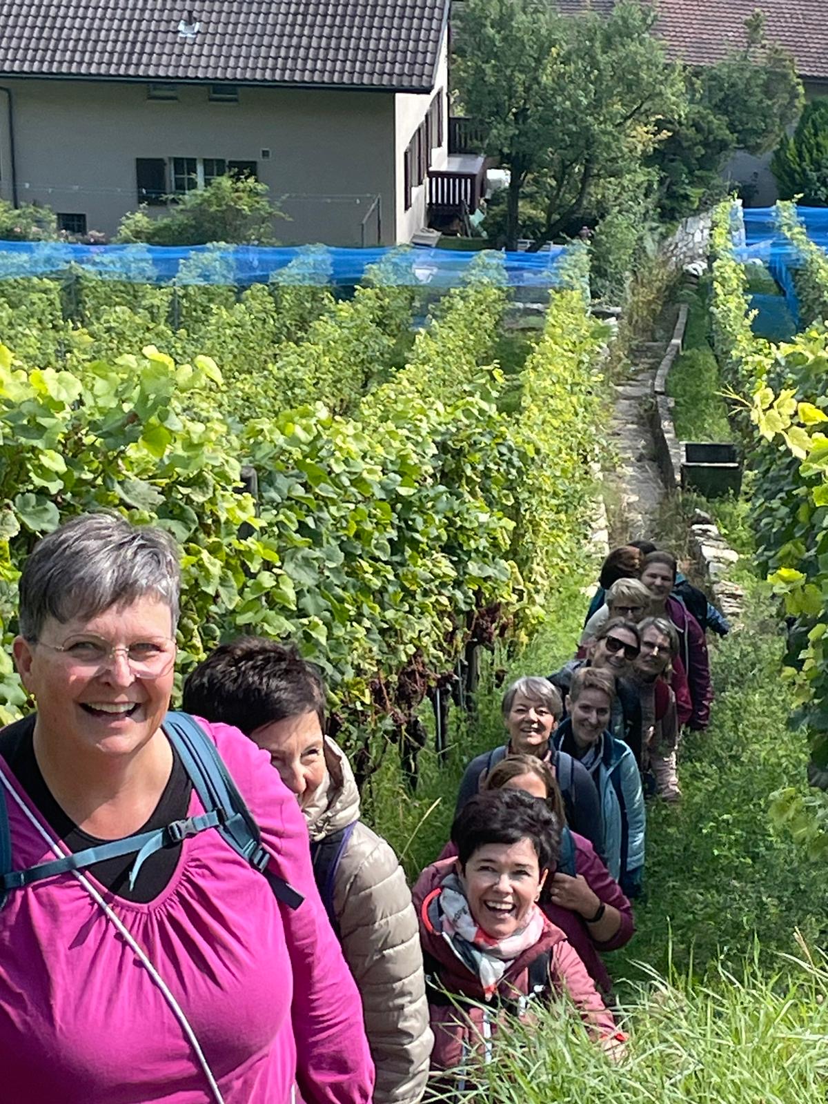 Bei herbstlichen Temperaturen und durchmischter Wettervorhersage, starteten am Freitag, 13. September 20 Frauen der InForm Hasle zum Herbstausflug ins Bieler Seeland. Die kurzweilige Zugfahrt führte über Bern nach Biel. Nach einem kurzen Fussmarsch durch die Stadt, genossen alle bei der Schifflände einen feinen Kaffee und Gipfeli. Nach der Stärkung starteten die Frauen ihre leichte und gemütliche zweieinhalbstündige Wanderung dem Rebenweg entlang bis nach Ligerz. Zu Beginn führte der Weg durch einen kleinen, im Schatten liegenden Waldabschnitt. Bereits hier erkannte man zwischen den Bäumen die großartige Aussicht auf den Bielersee und die St. Petersinsel. Die Turnerinnen folgten den sonnendurchflutenden Rebhängen bis zur Siedlung „Wingreis“. Beim kleinen und sehr familiär geführten Weinbauer Christoph Hügli/ Theres Kohler kehrten die Frauen zu einer interessanten und lehrreichen Weindegustation ein. Die Gruppe wurde mit mundenden Weinen und einem leckeren Speckzopf verwöhnt. Mit jedem weiteren Glas Wein wurde die Stimmung lockerer und lustiger. Reichlich gestärkt mit Speis und Trank – eventuell auch etwas mit weichen Knien – ging die Wanderung weiter zur Ortschaft Twann, mit seiner imposanten Kirche und seinem malerischen Dorfkern, da die Häuser geradezu ihre Geschichte aus dem Mittelalter erzählen möchten. Nach einem gut stündigen Fussmarsch, dem Seeuferweg entlang, erreichte die Wandergruppe Ligerz. Danach folgte eine gemütliche Schifffahrt zurück nach Biel. Auf der Rückreise im Zug herrschte eine tolle Stimmung, es wurde rege diskutiert, gelacht oder ein Nickerchen gemacht. Zum krönenden Abschluss genossen die Frauen im Gasthaus Engel Hasle ein feines Nachtessen. Vollgepackt mit schönen Eindrücken und spannenden Gesprächen, kehrten die Reisenden müde und zufrieden nach Hause zurück.