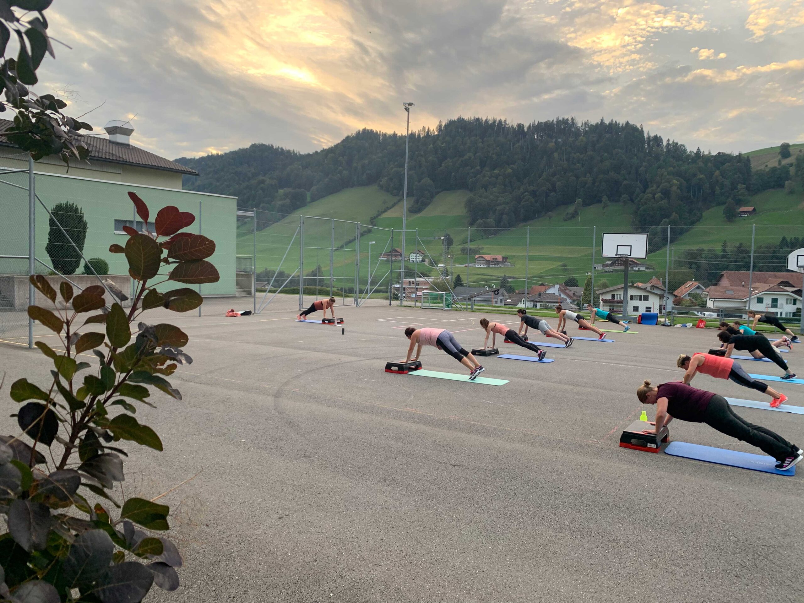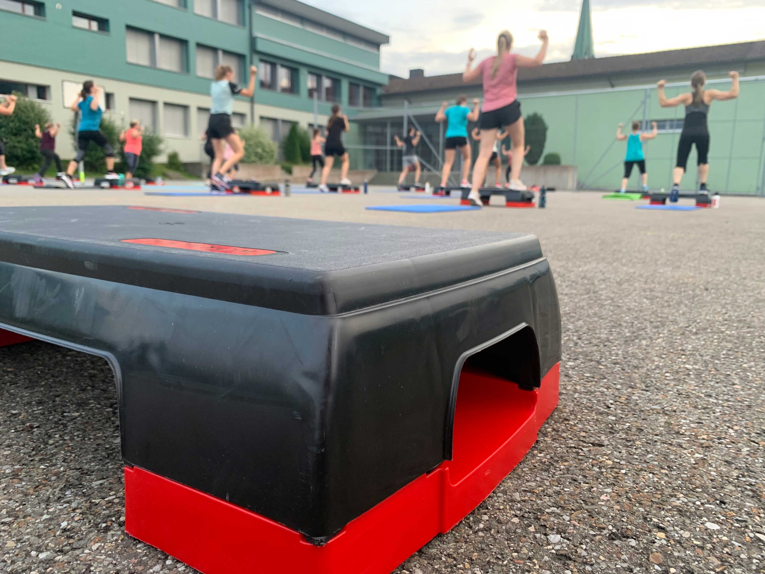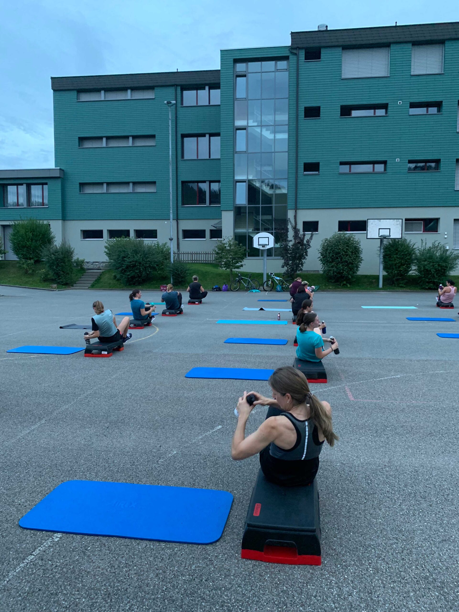 Bei schönem Wetter trai­nieren wir an der frischen Luft auf dem Schul­haus­platz. Bei Regen sind wir in der oberen Pausenhalle.