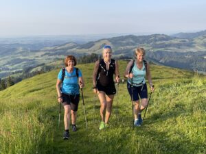 Am 6. Juni trafen sich 38 Mitglieder der InForm Hasle zur alljährlichen Fyrabetour auf dem Hasler Hausberg First. Als Sternwanderung wurde der Aufstieg an diesem wunderbaren Frühsommerabend aus verschiedenen Richtungen unter die Füsse genommen. Die Frauenriege wanderte gemütlich vom Parkplatz First Süd hoch zur First. Ein Teil der Bodytoning- und M.A.X. Frauen bewältigten die Strecke ab Heiligkreuz via kleine First oder Reistegg und genossen die wärmenden Sonnenstrahlen. Mit Walkingstöcken und genügend Wasser ausgerüstet startete eine weitere Gruppe von Hasle aus. Einmal mehr bot die Strecke über die Dürrenegg, Balmoos, Chienismatt und kleine First eine prächtige Landschaft und zeigte die Schönheiten unserer traumhaften Heimat. Fast gleichzeitig trafen alle auf der First ein und genossen beim Anblick des Schimbrigs, der imposanten Äebnistättenfluh und der Weite des Mittellands die herrliche Abendstimmung.