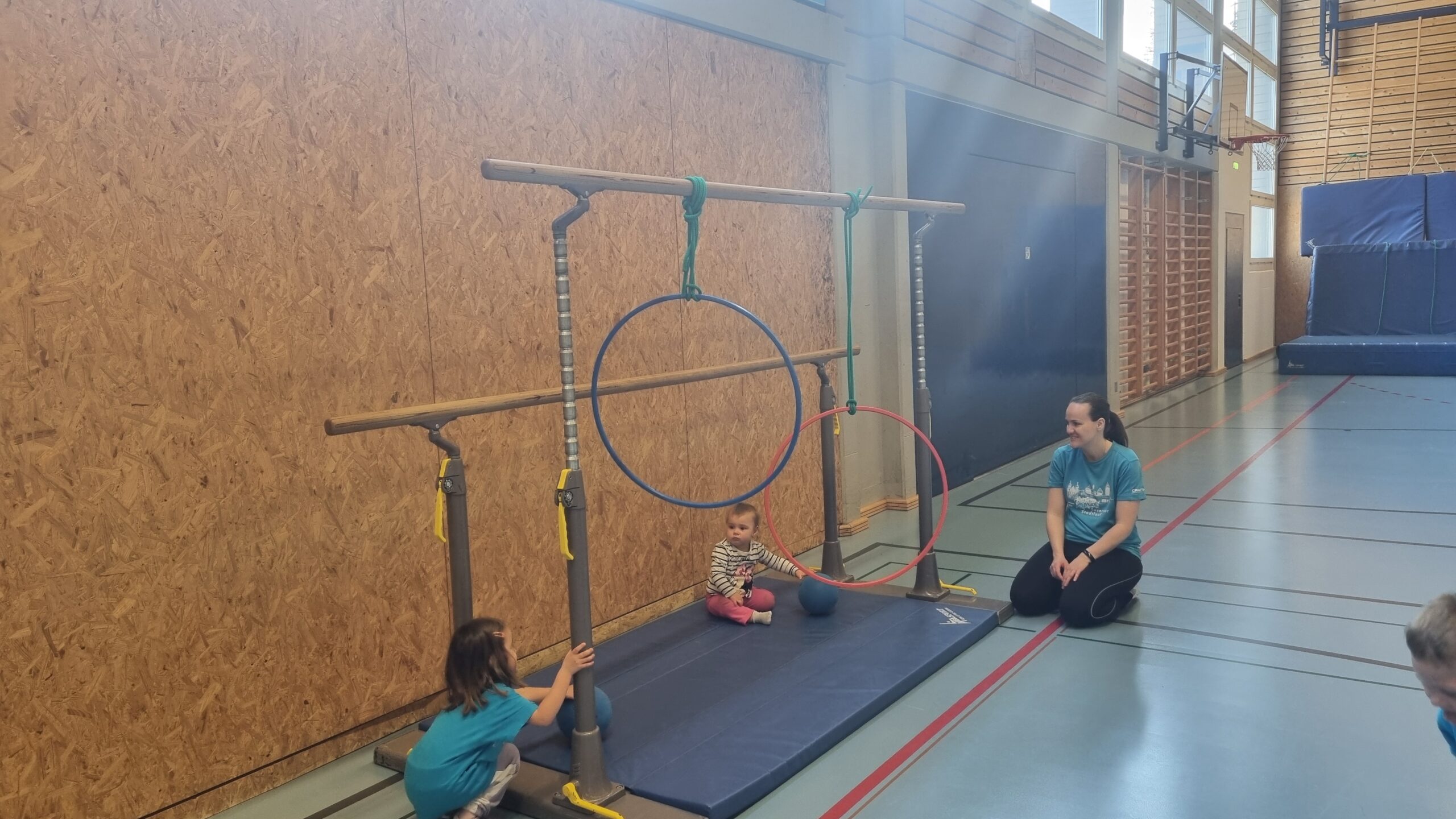 Bereits das zweite und letzte Mal in diesem Schuljahr durften die Kinder Heute gemeinsam mit ihren Papi’s turnen. Trotz tollem Wetter draussen, freuten sich die Kinder riesig auf den Nachmittag in der Turnhalle. Nach einem kurzen Spiel zum Aufwärmen ging’s dann auch schon los mit dem einfallsreichen Parcour, welchen die Vaki-Leiter Marcel und Stefan geplant und aufgestellt hatten. So konnten die Kinder ihr Können zum Beispiel auf einer Slackline, bei einer rasanten Abfahrt mit dem Bobbycar oder beim Klettern, zielen und werfen oder auf einem Trampolin unter Beweis stellen. Selbst wir Muki-Leiterinnen sind immer wieder positiv überrascht und auch etwas neidisch, was sich die Vaki-Leiter immer wieder für tolle, neue Posten einfallen lassen. Alle Kinder waren schon um einiges mutiger als beim letzten Vaki-Turnen im Herbst. Als Abschluss haben sich die zwei Vaki-Leiter noch ein lustiges Spiel überlegt, bei dem alle Kinder und vor allem die Papi’s ins Schwitzen kamen. Als Belohnung für das tolle Mitmachen der Kids gabs noch etwas kleines Süsses. Anschliessend an die abwechslungsreiche Turnstunde gab es für alle einen Hot-Dog, Kuchen, Sirup, Bier und Kaffee. Nach der verdienten Stärkung spielten die Kinder noch weiter gemeinsam in der Halle und die Papi’s genossen das gemütliche Beisammen sein. Langsam aber sicher machten sich dann alle wieder auf den Heimweg und genossen noch den restlichen Tag bei schönstem Wetter. Ein riesiges Dankeschön an Stefan und Marcel für die super Vaki-Stunde.